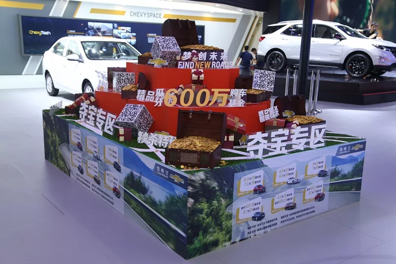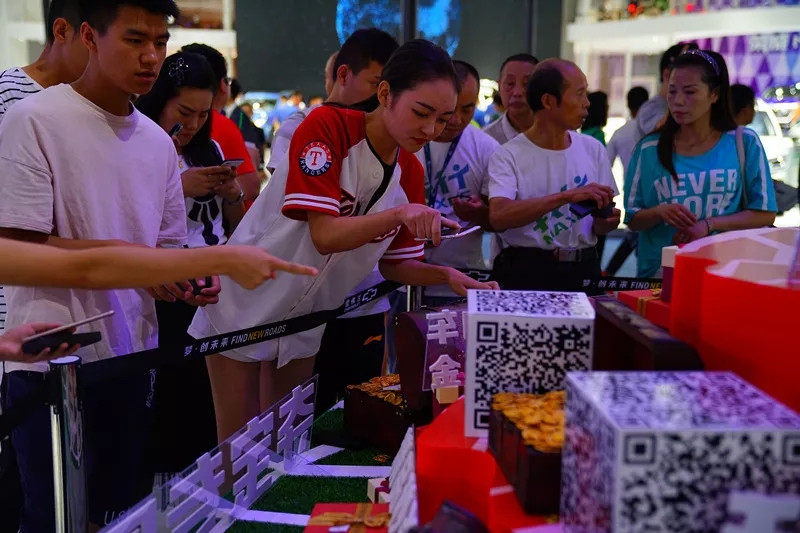 即使不在展台最显眼的位置,由源创团队设计的夺宝专区也吸引了一大波眼球,只要扫码就能瓜分600万购车基金!