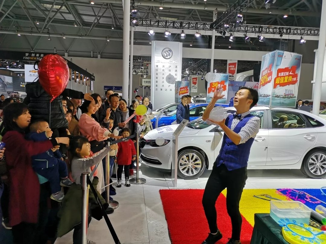 此次车展,别克汽车以千万要有你 山城惠友礼为车展主题,除了融入了大主题外,源创二部的小伙伴们还加入了自己的奇思妙想,使得别克N5展台在现场呈现出精彩的表演和创意的互动。
