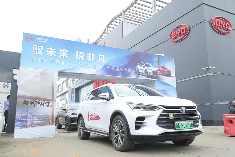 一大早比亚迪全新一代唐就整齐的摆放在门口