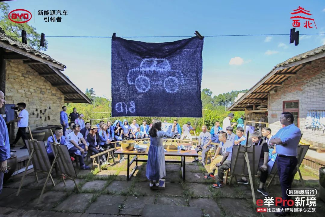 本次活动源创的小伙伴用“净心”作为关键词 原因有二 其一 作为电动汽车的行业先驱 比亚迪的初衷便是给予社会一颗“净心” 其二 面对纷扰的外力 无论是芸芸大众还是企业或是产品 都需要有着不忘初心的本衷 1 第一站——浦江明月村 1 位于蒲江的明月村 是隋唐茶马古道和南方丝绸之路上的皈宁驿站 源创的小伙伴把试驾的第一站选在这里 因为明月村有着 六千亩生态雷竹碧波荡漾 两千亩生态茶田层峦叠翠 如禅室幽静,无喧嚣嘈杂之声入耳 诗意生活,拥抱青山 新村民与原住民互助融合 除了美景相伴 在明月村体验扎染也极富趣味 扎染古称扎缬、绞缬、夹缬和染缬 是中国民间传统而独特的染色工艺 扎染的染料均来自纯天然的板蓝根 环保无污染,且对身体有益 印有比亚迪LOGO的染布 在蓝天白云质朴的环境下,非常的和谐 特别契合比亚迪的绿色环保理念 1 第二站——大佛禅院 1 佛禅院,作为朝拜峨眉山的第一门户 是前往峨眉祈福、朝拜的第一站 大佛禅院原名大佛寺,位于峨眉山市区东郊 走进大佛禅院,宛若一步之间穿越了时空 一切喧嚣与热闹、尘世的烦恼与繁华都与此无缘 这里有的,除了清静,还是清静 整个寺院色彩古朴,厚重大气,气势恢宏 在整个试驾过程中 我们体会到的不仅是比亚迪家族的强大实力 蒲江的扎染,峨眉参观大佛禅院 放松身心的温泉之旅,趣味十足的车内寻宝 行程中不断穿插的小活动 让整个试驾过程更有调性 也更不负“逍遥行”之名