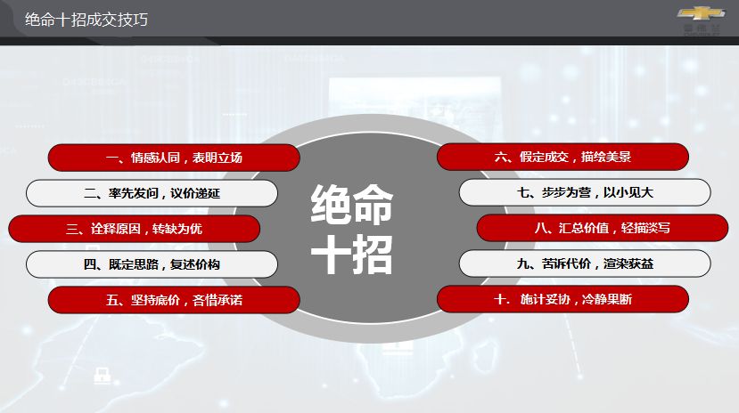 在雪佛兰感恩节团购活动超额完成业绩的背后 是我们专业的方案策划能力和落地执行能力 今天要介绍的是 我们让雪佛兰如此优秀的秘诀 源创驻店培训老师 1 1 说到现如今的网络带货大佬 “李佳琪”必须榜上有名 他的每一句“OMG”“买它!”“太漂亮了吧!” 恰恰能抓住小姐姐们的死穴 剁手就完事儿了 源创的驻店培训老师也善于抓住客户的痛点 针对每一家4s店的集客、邀约、成交状况 进行优势劣势分析 对症下药,解决最根本的问题 1 NO.1 全方位专业的介绍 1 六方位介绍 FABID方法 5S方法 产品推荐三部曲 针对不同性格特点的客户 驻店培训老师为销售人员讲解对应方法 1 NO.2 试乘试驾体验 1 试乘试驾是车辆介绍的延伸 也是让客户亲身体验产品性能的最好时机 客户通过切身体会和驾驶感受 加上销售顾问把握机会动态介绍 可加深客户对产品的认同 1 NO.3 1 培训会现场驻店培训老师 会讲解需求分析的两大目的 开发出客户的模糊需求和客户的明确需求 把客户的需求往前推动,使其达到非常强烈的需求程度 并且用大量的案例进行讲解 1 NO.4 议价成交 1 驻店培训老师分享议价成交的经验 对价格咨询培训应对技巧 1 NO.5 客户的邀约 1 除了针对活动现场的销售培训 对于后期的客户邀约跟单 驻店老师也进行了全方位的培训 客户跟单 客户级别判定 客户邀约管理 邀约话术提升 源创自有的特卖平台 为本次活动提供了经验丰富的驻店老师 当然一场活动的成功是需要多方的配合 有了经销商大力支持和驻店老师的培训 才能让前期预热和邀约顺利进行 现场销售人员才能展现出培训后专业的一面 人气爆棚的活动现场 是多方配合最好的证明