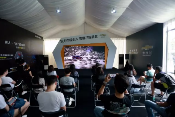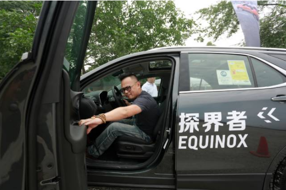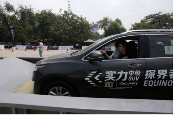 太阳底下人真多!来试驾探界者的人也太多了吧,感觉要等得被晒晕!不如趁现在先去玩儿一把赛车游戏?GOGOGO!