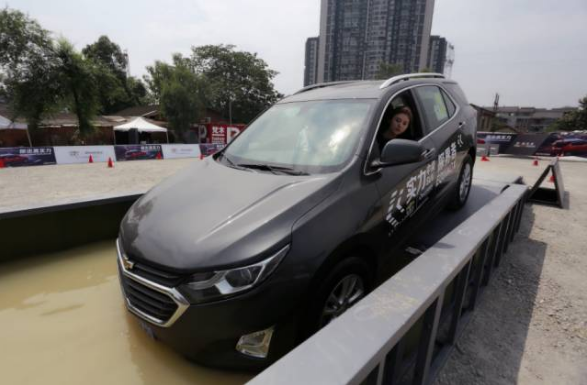 此刻的小白终于带着一脸紧张和小兴奋正出场啦!首先她要体验的是“轮滑阻”项目,低速驶入时,当车轮停止不前,此时猛踩油门,探界者智能四驱自动进行扭矩分配,无碍脱离困境,顺利通过。由于左右错列排放会造成车辆4轮不规则打滑,这个项目可体验动态扭矩分配系统带来的强悍的脱困能力与妥妥的安全性。