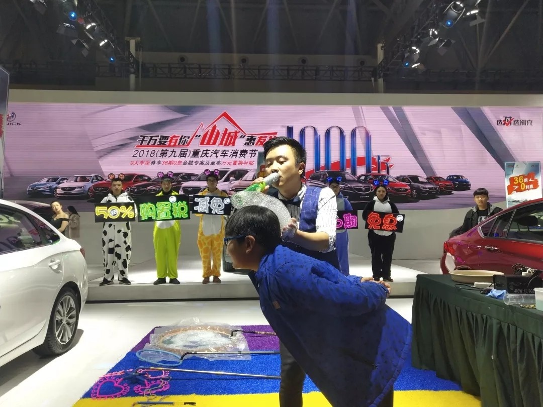 此次车展,别克汽车以千万要有你 山城惠友礼为车展主题,除了融入了大主题外,源创二部的小伙伴们还加入了自己的奇思妙想,使得别克N5展台在现场呈现出精彩的表演和创意的互动。
