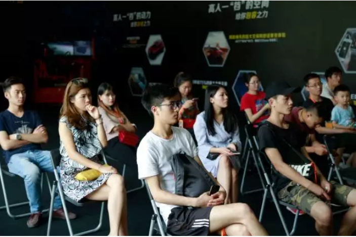 太阳底下人真多!来试驾探界者的人也太多了吧,感觉要等得被晒晕!不如趁现在先去玩儿一把赛车游戏?GOGOGO!